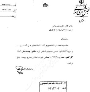 قانون بودجه در جلسه ۳۱ اردیبهشت ماه ۱۴۰۳ در مجلس شورای اسلامی تصویب شده بود.